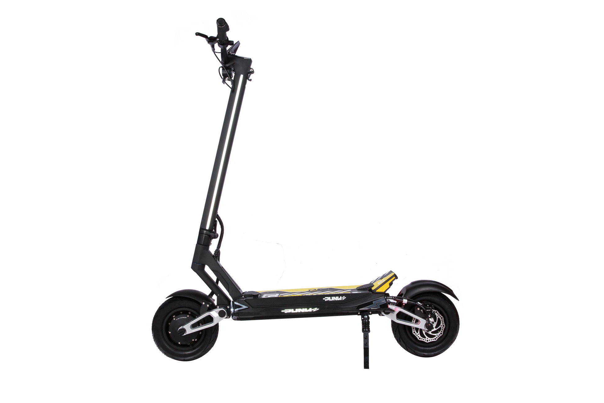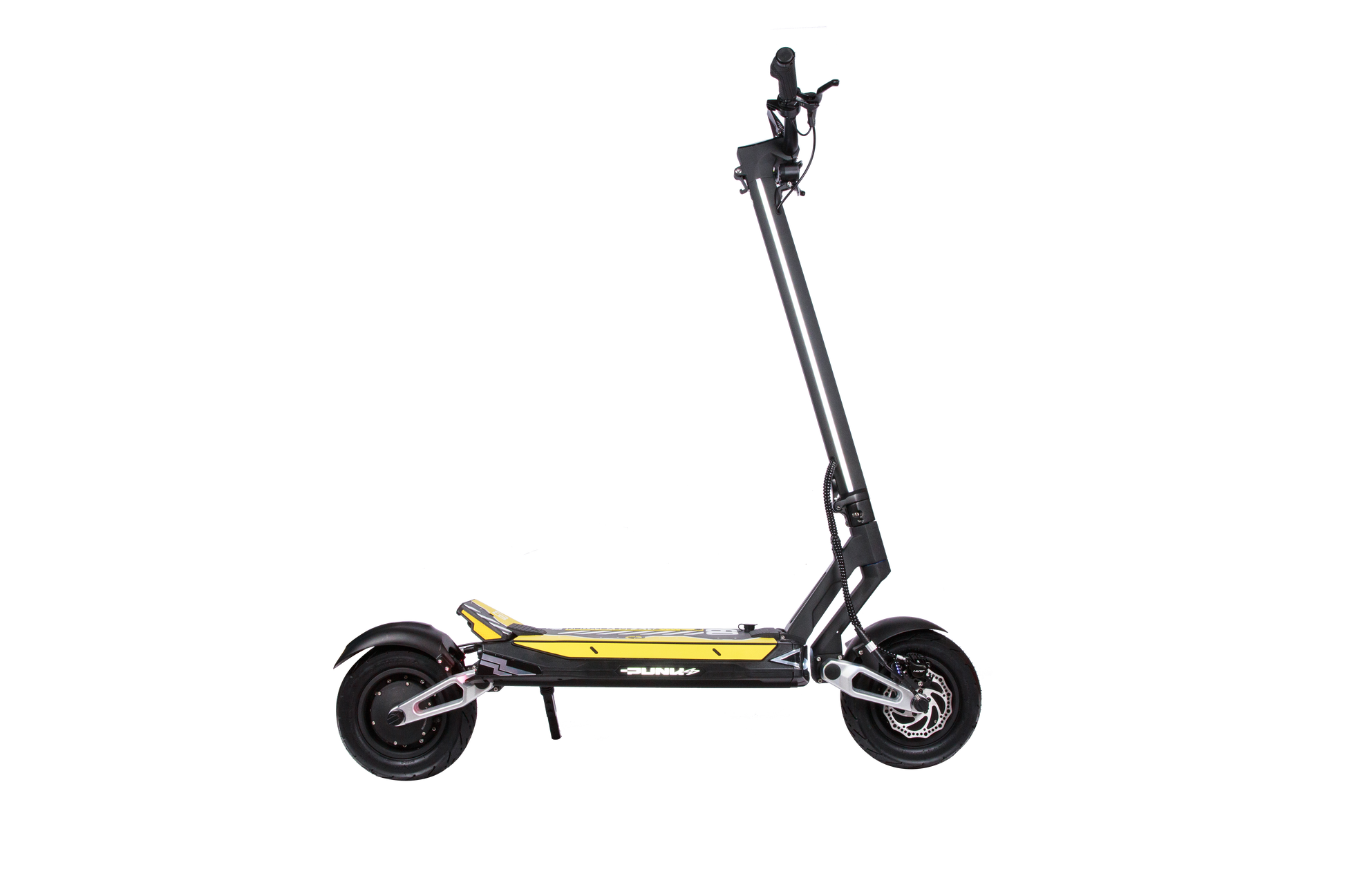 - LED Light Strip: A highly visible nighttime silhouette thanks to LED strips along the entire length of the scooter.